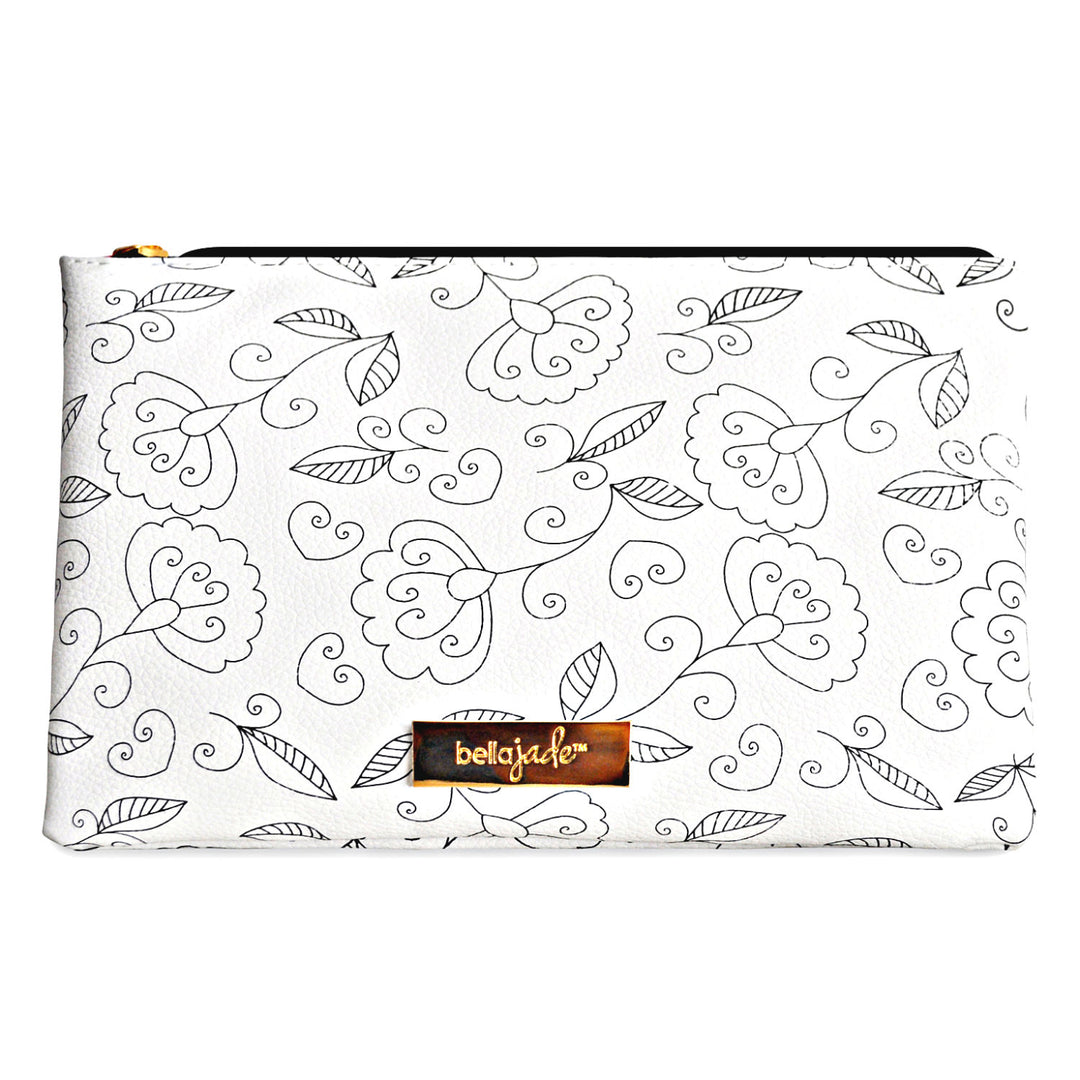 Makeup Pouch - Black and White Floral Design