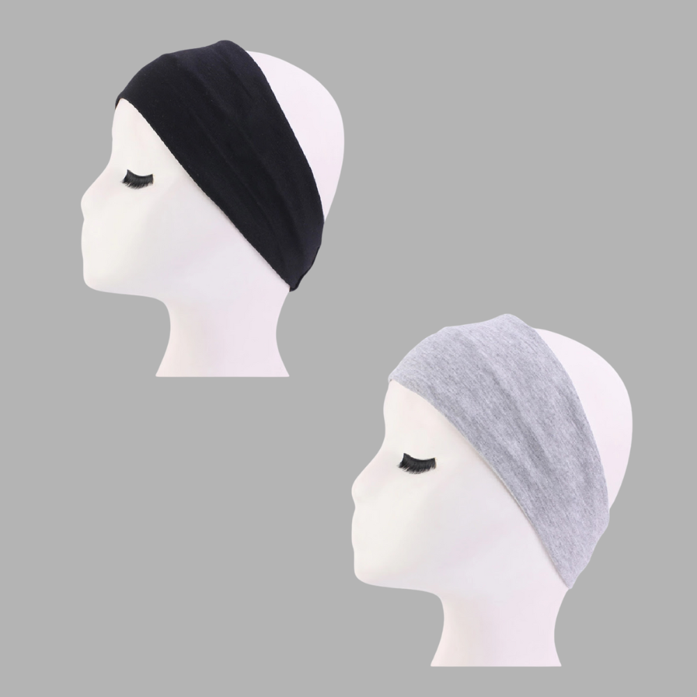 - 1 black and 1 gray fabric headband