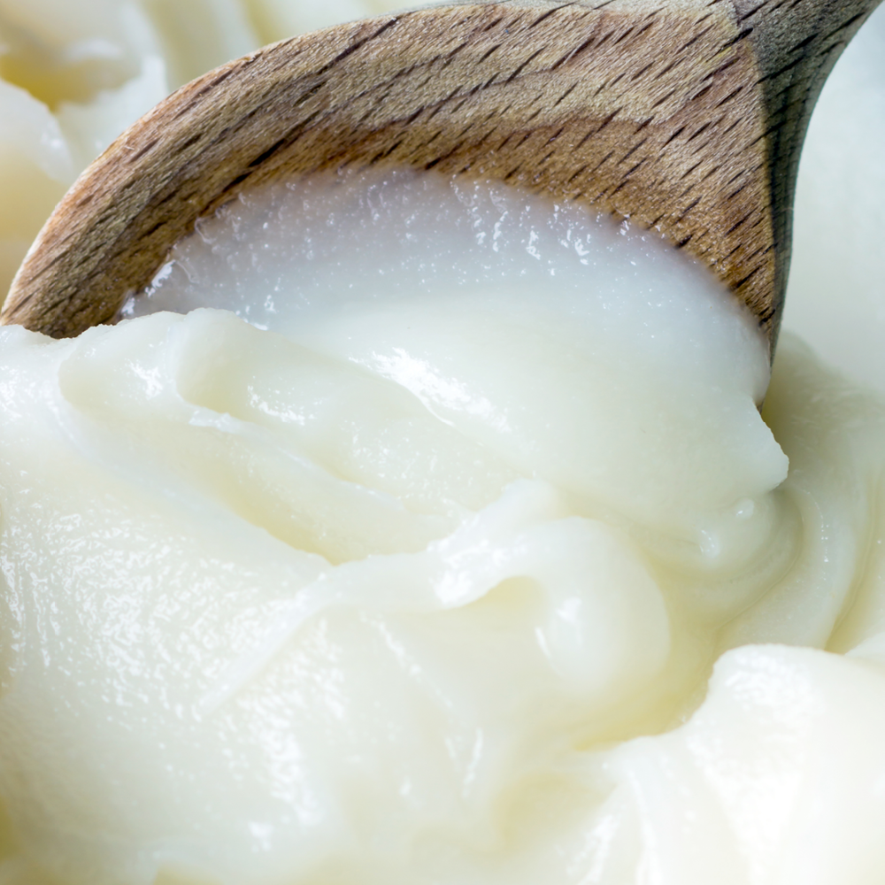 Examples: grass-fed tallow, beeswax, cupuacu butter, kokum butter, shea butter, mango butter, lanolin and cocoa butter (excellent for body care but can clog facial pores)