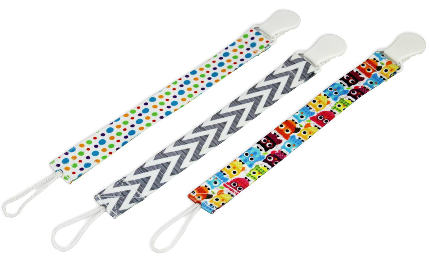 This 3-pack of stylish, "Mom-designed" pacifier leashes offers a perfect blend of fashion and function by using bright, fun, and unisex designs to keep all your baby's accessories - from pacifiers and teethers to blankets and drool bibs - securely off the floor. Constructed from washable, durable, and non-toxic materials like high-quality cotton/satin ribbon and nickel-free metal/plastic clips, these holders are free from BPA, Phthalates, Lead, and Latex, ensuring they are gentle on clothes yet provide a strong, lasting attachment. Makes a great baby shower gift!